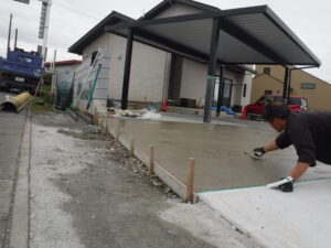 土間コンクリート作業の様子です ハケ引き仕上げです