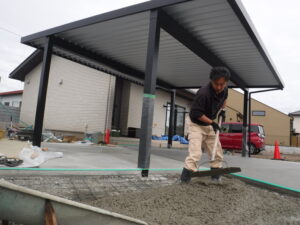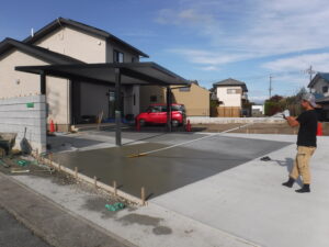 土間コンクリート作業の様子です ハケ引き仕上げです