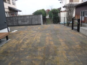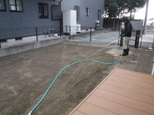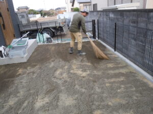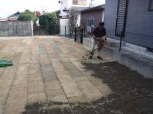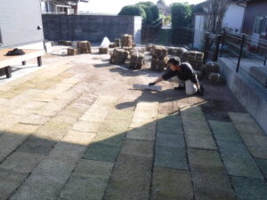 シバ張り作業の様子です 大判タイプでワンちゃんの庭になります