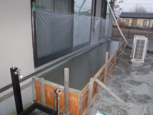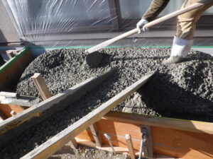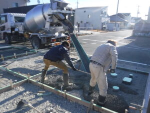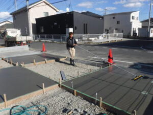 土間コンクリート作業の様子です ハケ引き仕上げです