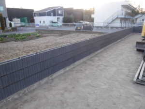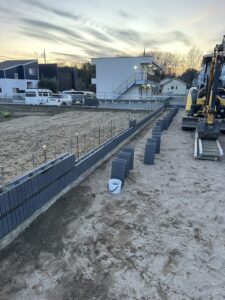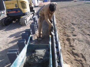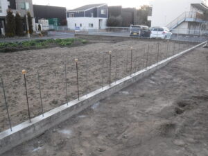 ブロック組積作業の様子です アンカー補強して木調フェンスを付けさせて頂きます