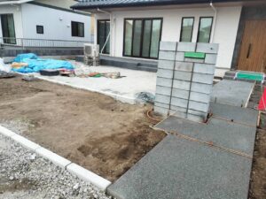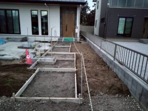 アプローチ作業の様子です 洗出しコンクリート仕様です