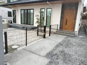 庭・門回り作業の様子です 敷地の一部を囲いワンちゃんが安心して遊べるように